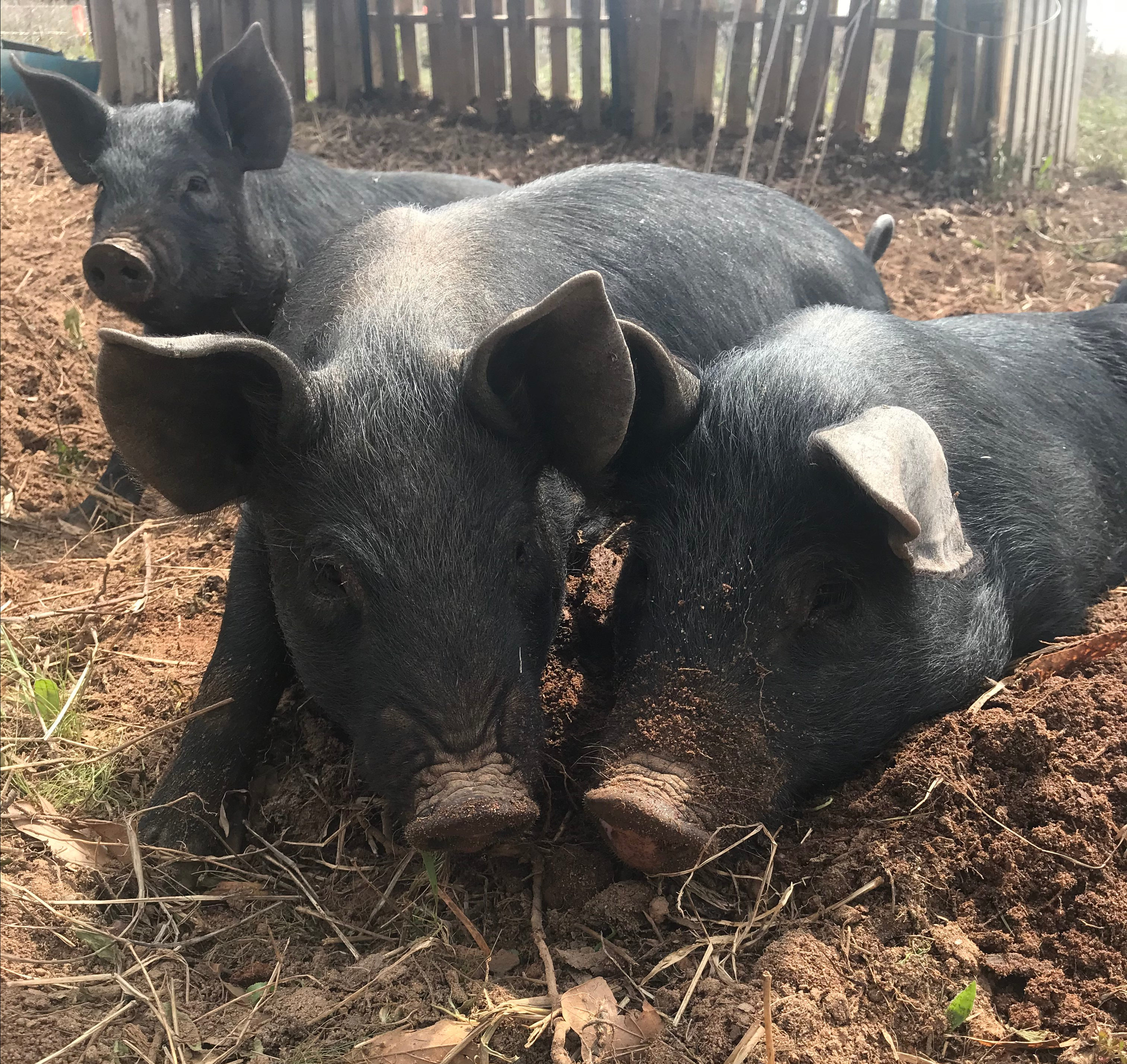 They will leave this pen in a few days to live on pasture and in the woods, much as any pig ancestors on this land lived. Perhaps they will eat acorns from the same tree a pig ate from 100 years ago. They will have one bad day in their lives, the day they go to the slaughterhouse, but for the rest of their approximately six months with me, they will enjoy life outdoors rooting in the dirt and searching for goodies.